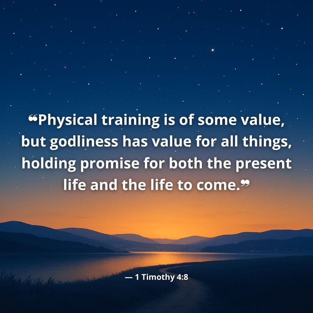 “For physical training is of some value, but godliness has value for all things, holding promise for both the present life and the life to come.” — 1 Timothy 4:8
